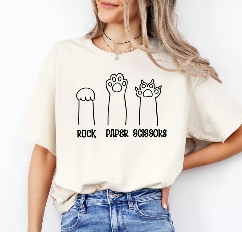 Funny Cat Paw Shirt And Sweatshirt: Rock Paper Scissors Unisex Crewneck