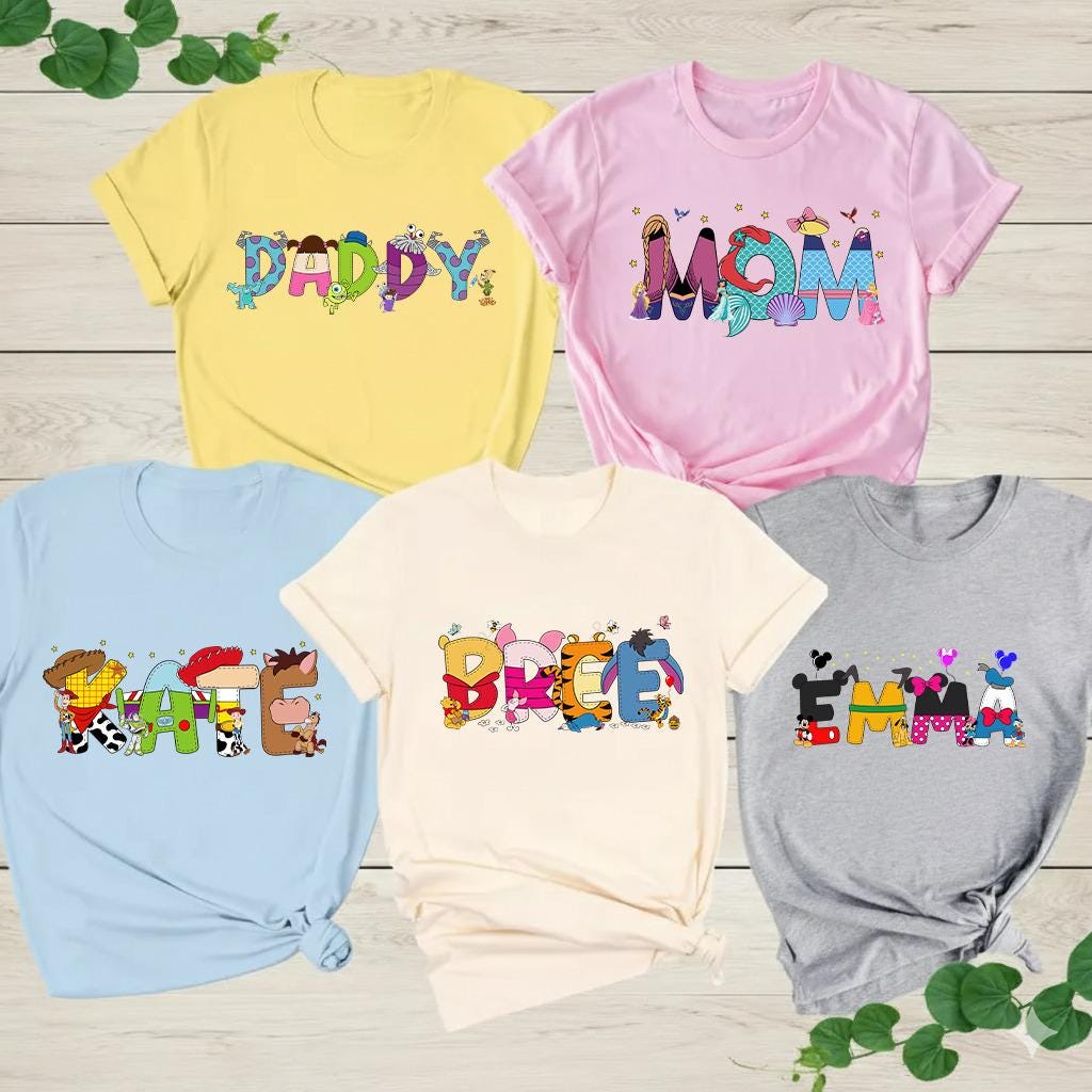 Custom Name Disney T-Shirts, Disney Family Trip Shirt, Walt Disney World Shirt, Disney Family Matching Tee, Disney characters alphabet