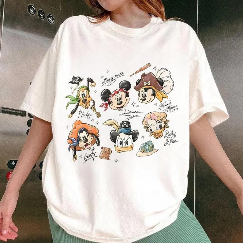 Mickey and Friends Pirate Crew Signatures Shirt, Mickey & Co Baby Tee Shirt, Mickey Sketch Shirt, Disney Sketch Tee, Disney Family Shirts