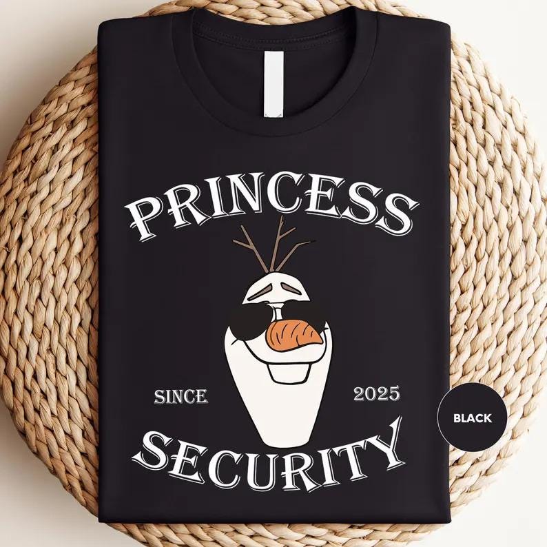 Princess Security Olaf Shirts, Olaf Inspired Humor Tee, Disney Princess T-shirt, New Dad Shirts, Disneyland Family Shirts, Disney Trip Tee